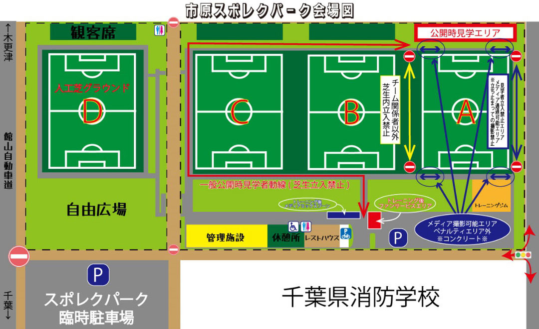 - 練習中の写真・動画撮影は禁止とさせていただきます。練習内容(戦術、セットプレー、参加/不参加選手名、練習のビブス分け、別メニュー中の選手名、アウェイ戦出発時のバス乗りなど)は、サポーターの皆さまのみ情報共有に留まらず、今後の対戦チームへの情報提供にもなりかねませんので、ご理解とご協力をお願いいたします。なお、上記に該当する撮影、SNSやインターネットへの投稿が確認された場合、トレーニングの公開を非公開とさせていただく可能性がございます。