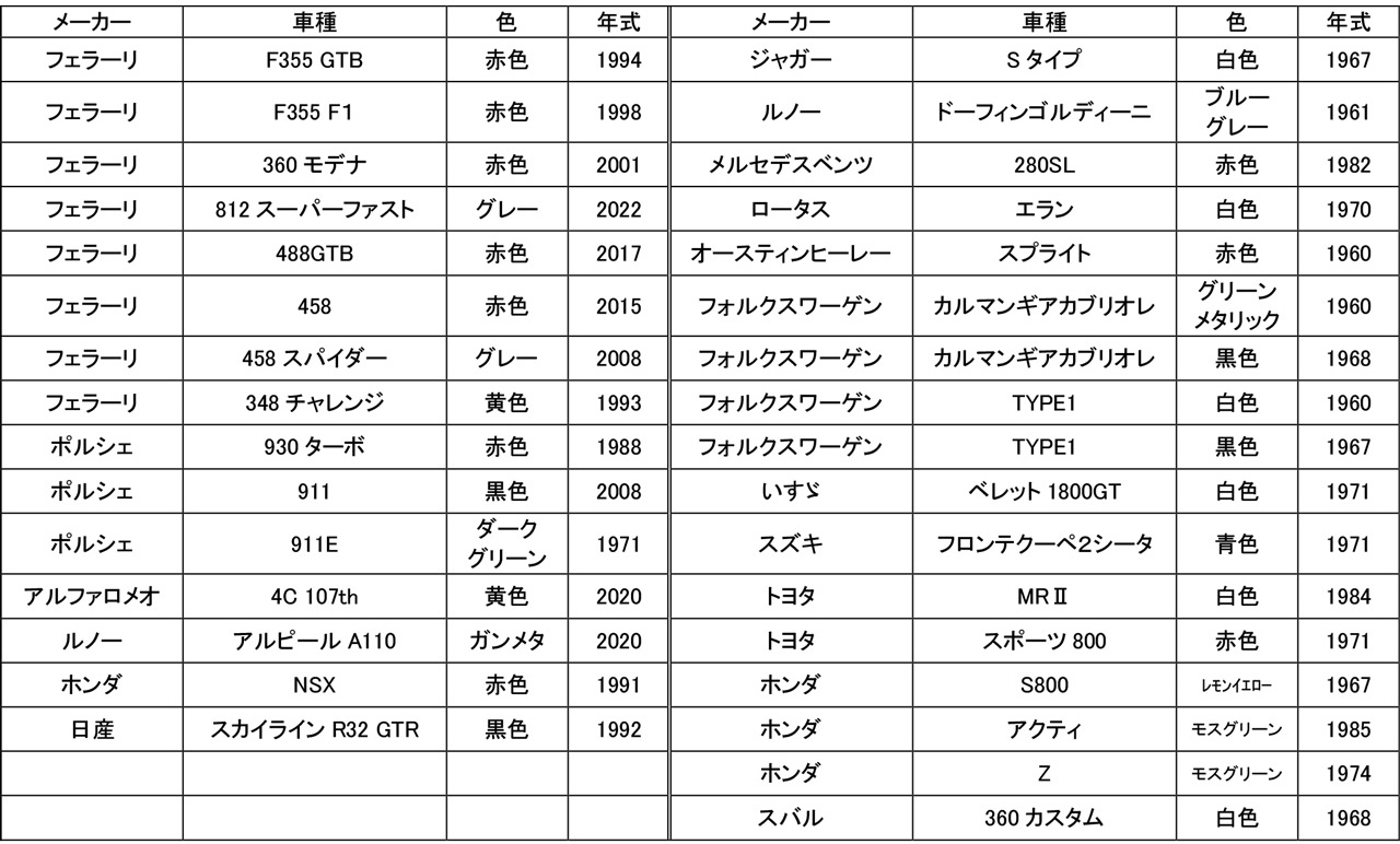 ※実際の展示車両と異なる場合があります。雨天の際はイベントが中止になる、または車両が少なくなる可能性があります。