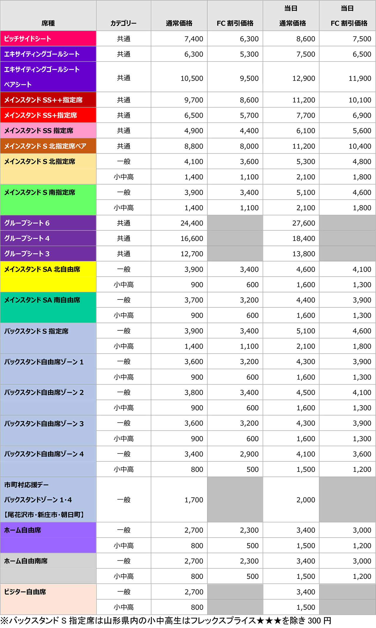 購入方法:https://www.montedioyamagata.jp/ticket/fc/ - 山形県総合運動公園受付窓口(自由席のみ)