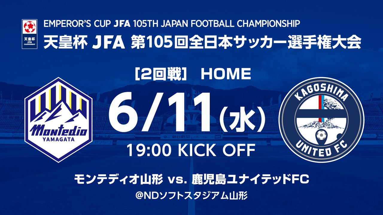 第105回天皇杯全日本サッカー選手権2回戦 モンテディオ山形vs 鹿児島ユナイテッドFC チケット販売のお知らせ