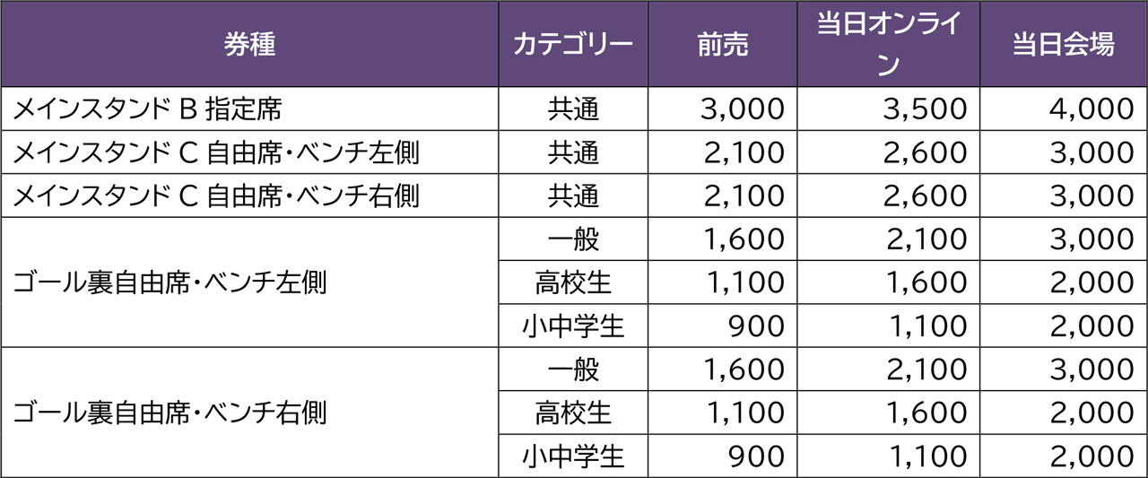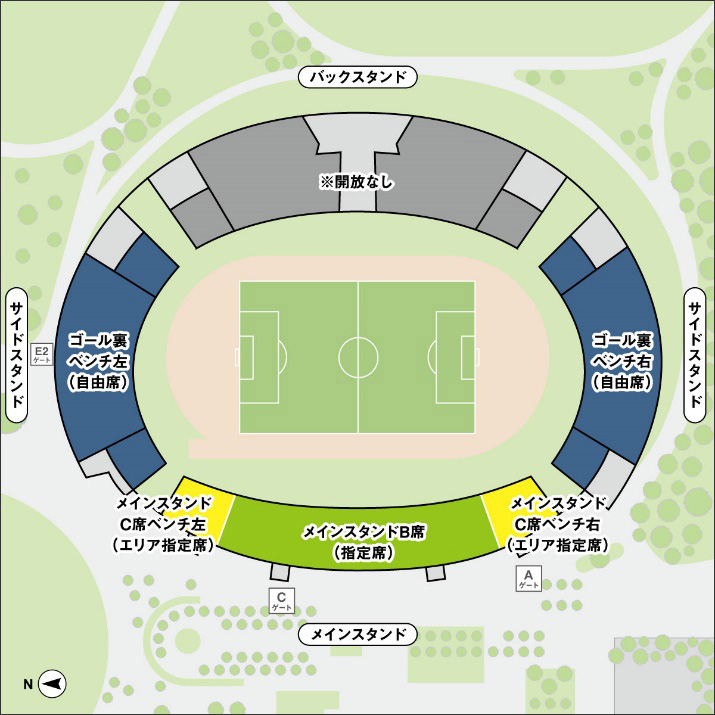 - Aゲート…メインスタンド、ゴール裏ベンチ右(自由席)