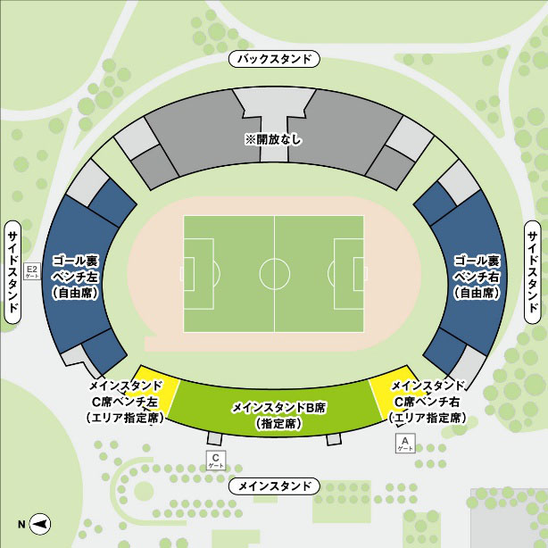 - E2ゲート…ゴール裏ベンチ左(自由席)