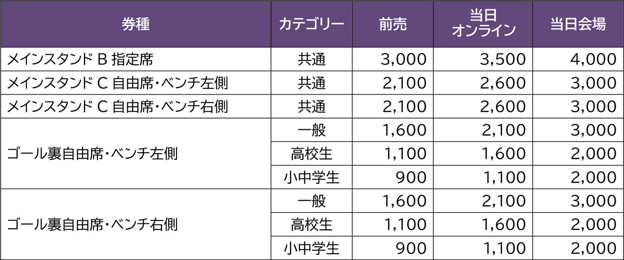 - Aゲート…メインスタンド、ゴール裏ベンチ右(自由席)