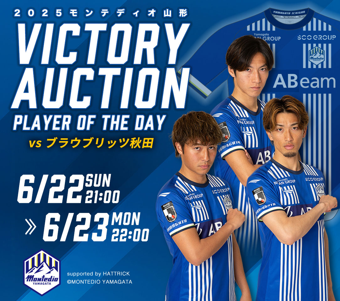 モンテディオ山形では、今季からホーム・アウェイ全試合において勝利時限定で、オークションサービスハットトリックにおいて、勝利試合後24時間限定で「VICTORY AUCTION」を開催いたします。