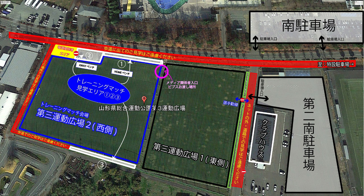 - トレーニングマッチ終了後は速やかにご退場ください。駐車場での選手の出待ちはご遠慮ください。