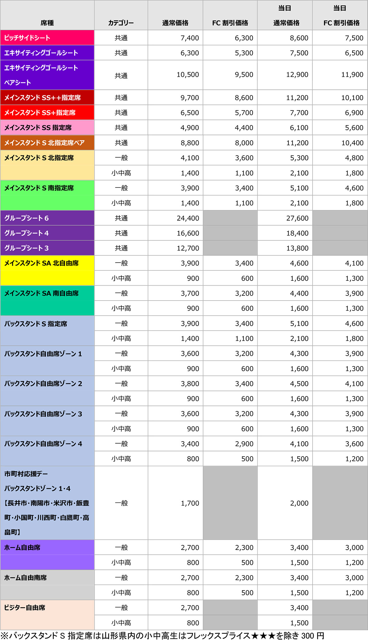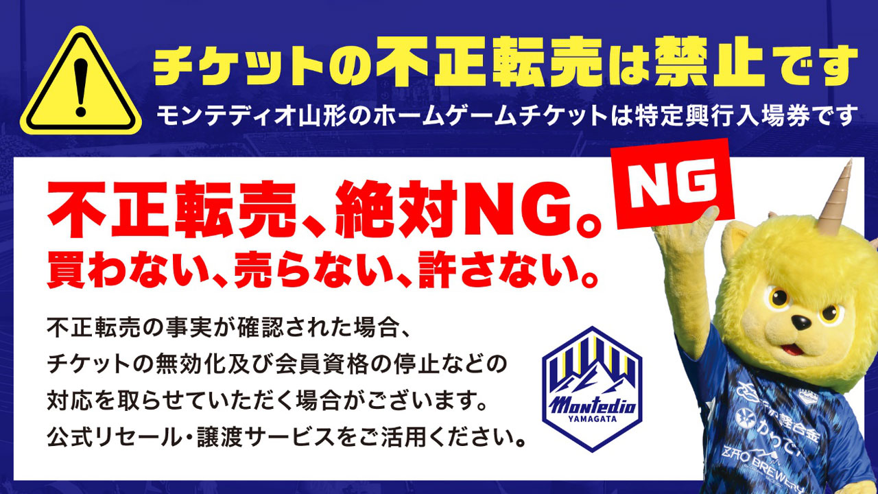 ※2025年4月19日(土)愛媛FC戦以降の主催ホームゲームにおいて、「特定興行入場券の不正転売の禁止等による興行入場券の適正な流通の確保に関する法律(以下「チケット不正転売禁止法」)」の要項を満たした「特定興行入場券」として販売いたします。