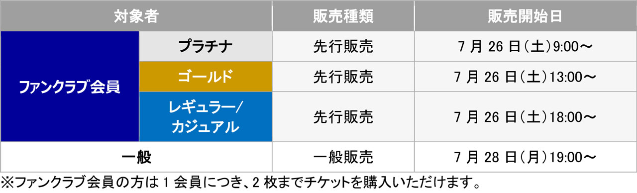 ※ファンクラブ会員の方は1会員につき、2枚までチケットを購入いただけます。