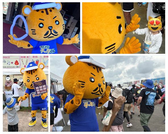 おとどけチータくんが会場内でグリーティング。一緒に写真と撮ってくれた方にシールをプレゼント。暑さ対策のため、倉庫で使っている業務用の冷感スプレーを持っているので、涼しくなりたいときはチータくんに声をかけてね!シュッシュするよ!