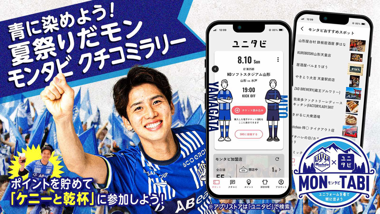 8月10日開催のホームゲーム水戸ホーリーホック戦に合わせ、2025シーズンより導入している「モンタビ(ユニタビ)」アプリを用いて、モンタビ加盟店を巡り、街を青に染めるクチコミ投稿ラリーを開催いたします。