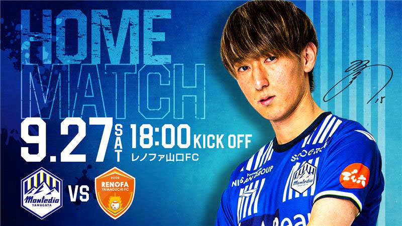 - 9月27日(土)モンテディオ山形 vs レノファ山口FC(18:00キックオフ/NDソフトスタジアム山形)