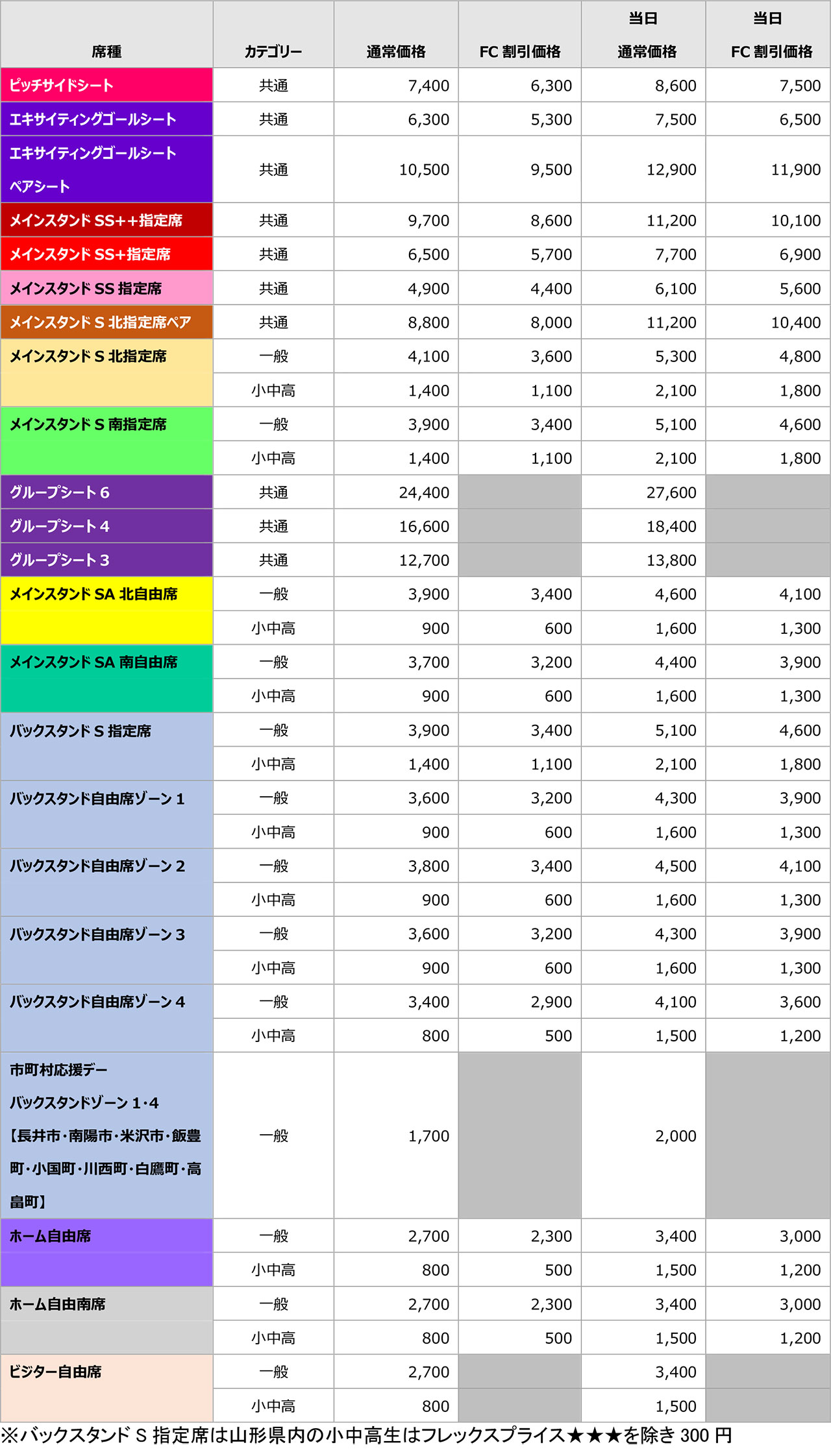 購入方法:https://www.montedioyamagata.jp/ticket/fc/ - 山形県総合運動公園受付窓口(自由席のみ)
