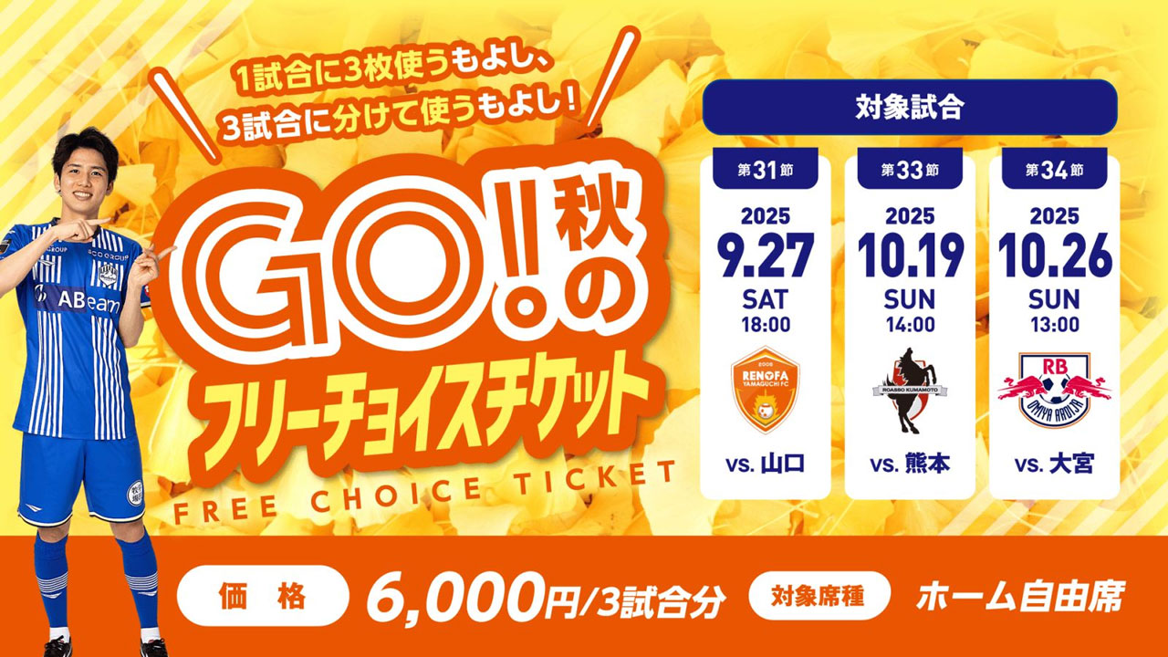 1試合に3枚使うことも、3試合に分けて使うことも可能な「GO!秋のフリーチョイスチケット」を販売いたします!