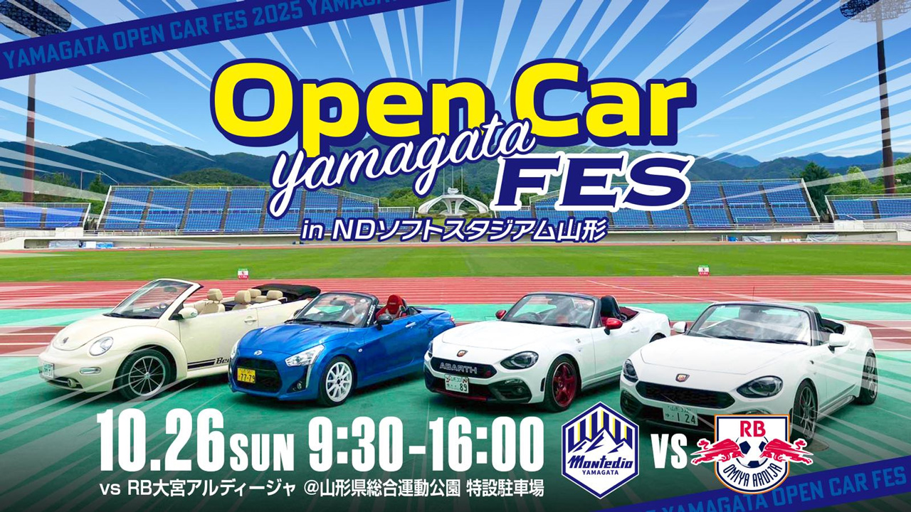 モンテディオ山形では、2025年10月26日(日)に開催するホームゲーム、RB大宮アルディージャ戦において、『山形オープンカーフェス』を開催いたします。