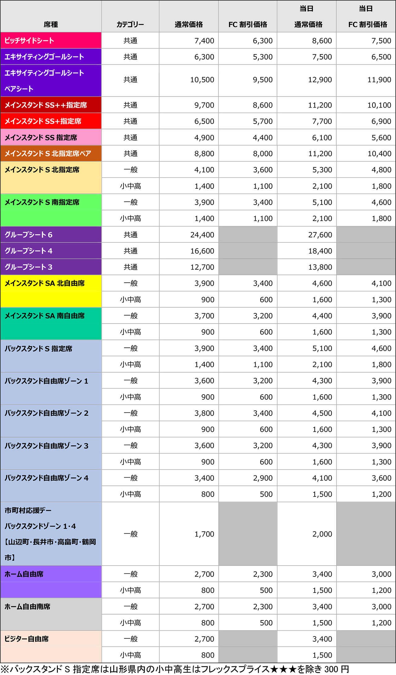 ※2025年4月19日(土)愛媛FC戦以降の主催ホームゲームにおいて、「特定興行入場券の不正転売の禁止等による興行入場券の適正な流通の確保に関する法律(以下「チケット不正転売禁止法」)」の要項を満たした「特定興行入場券」として販売いたします。