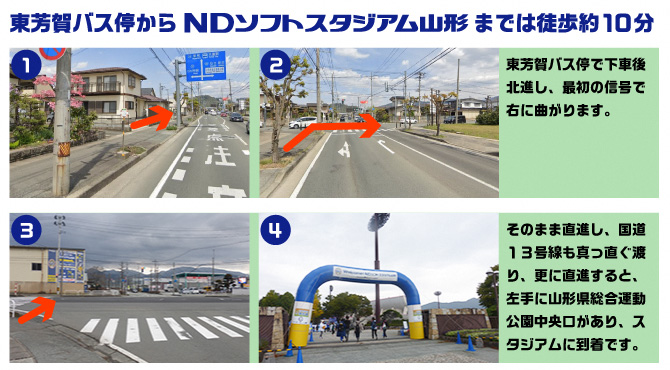 - 「東芳賀」停留場からNDスタまでは徒歩10分となります。詳しいルートは下記をご覧下さい。
