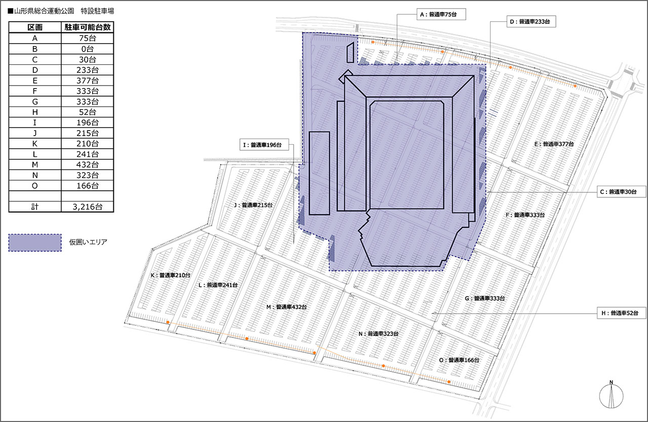 新スタジアム建設工事に伴う山形県総合運動公園特設駐車場一部利用制限のお知らせ