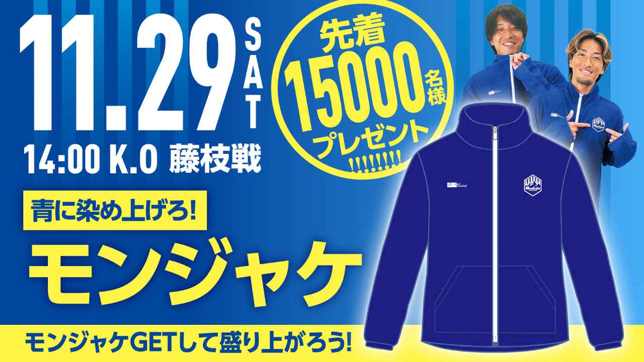 試合は熱く!スタジアムは青く!11.29ホーム藤枝戦 来場者15,000名様に『モンジャケ』プレゼント