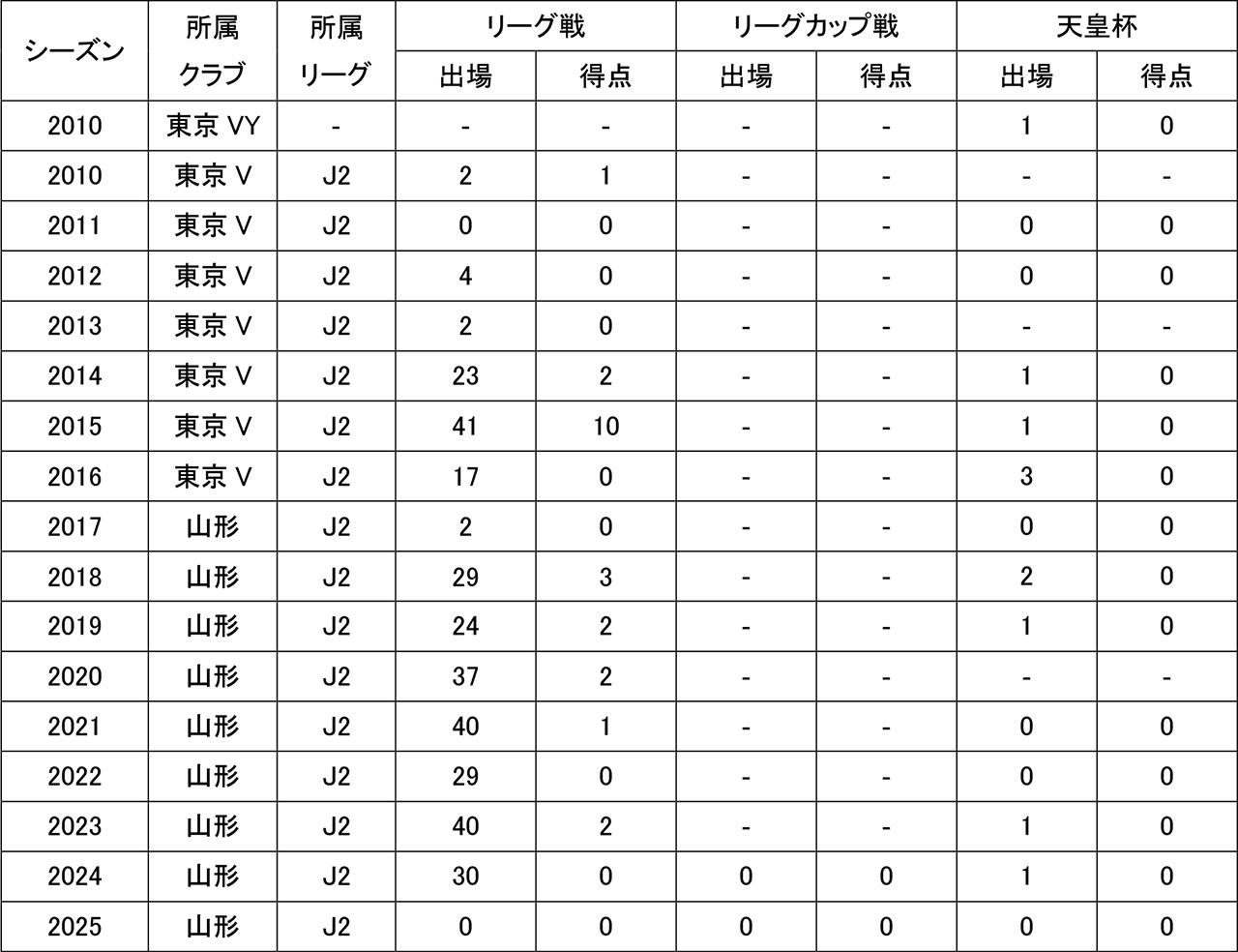 - カップ戦通算0試合出場0得点