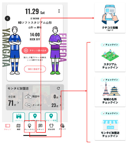 店舗訪問時のノベルティとして「ICカードステッカー(全5種類)」や、11月29日(土)藤枝MYFC戦では「中村亮太朗選手 アクリルスタンド」、チェックインラリーポイント特典として、豪華アクティビティへ参加できる権利を付与いたします。