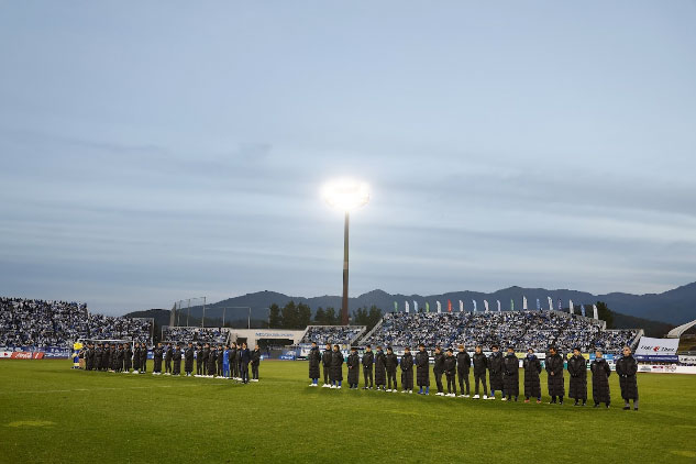 ウォーミングアップでピッチに入場する選手ハイタッチでお出迎え、ウォーミングアップを見学するサポーターを募集します。勝利に向け、熱い気持ちでお出迎えください!!