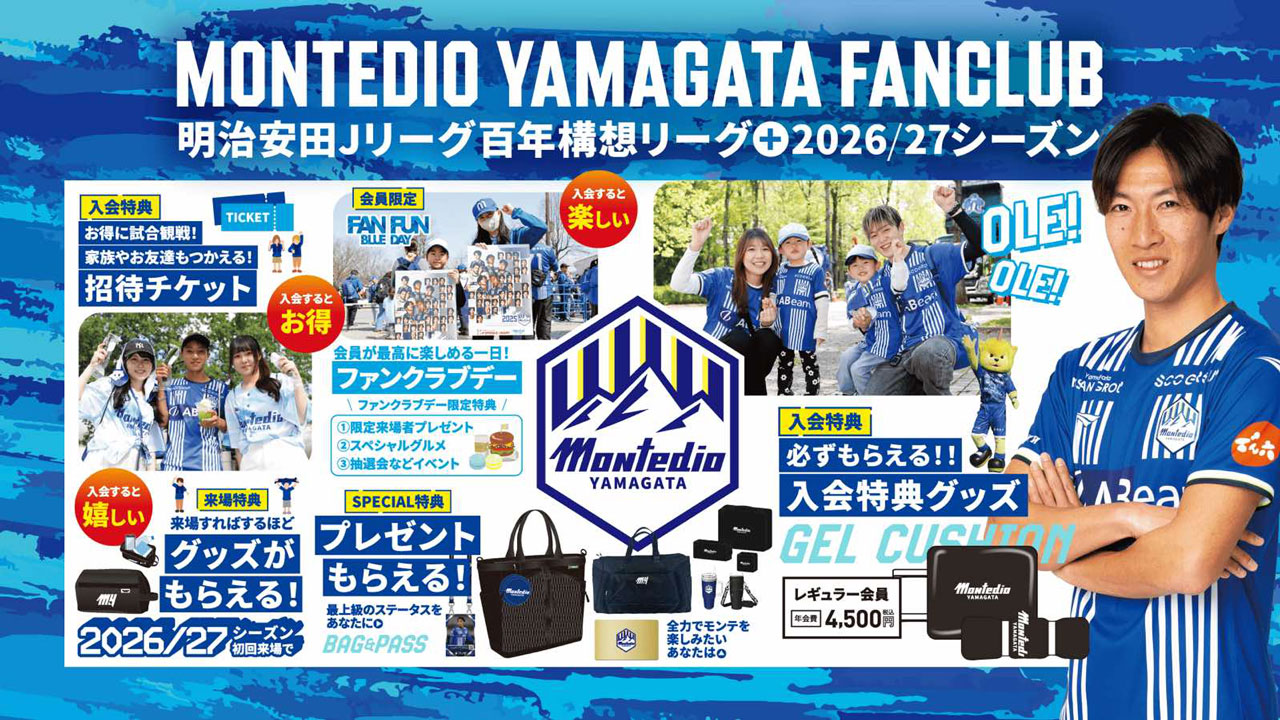 明治安田Jリーグ百年構想リーグ・2026/27シーズン 11/21(金)12:00~ モンテディオ山形 ファンクラブ入会受付開始のお知らせ