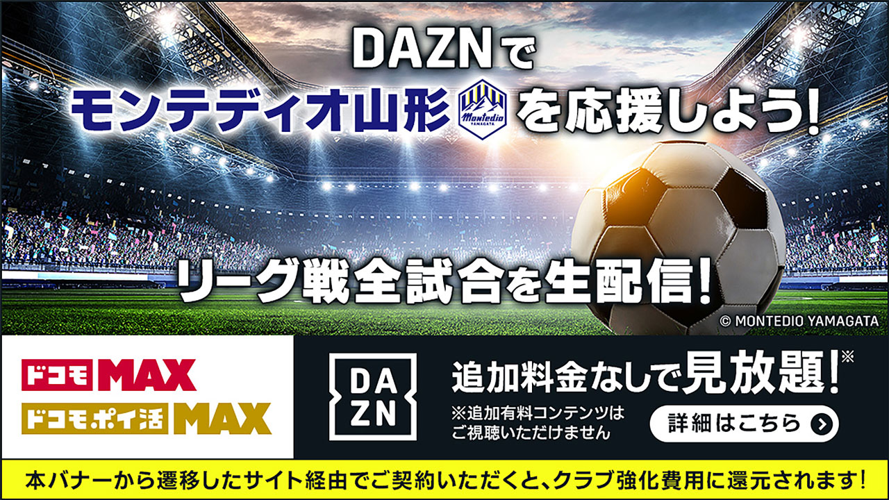 さらにモンテディオ山形の指定バナー/URL経由で料金プランをお申し込みいただくと、クラブへ強化費用が寄付されます。