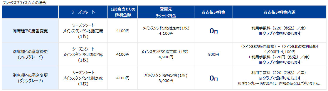 「お誘いも席種・席番変更も安心!」シーズンシート席変更手数料220円 クラブ負担対応のお知らせ