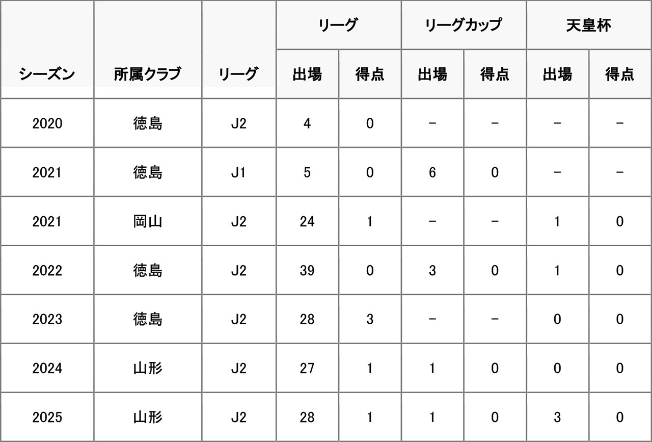 - J1リーグ戦 通算5試合出場0得点