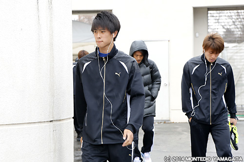 さてスタジアムがサポーターの皆さんの熱気で盛り上がっていく中、選手たちも到着します。こちらは開幕戦で高卒ルーキーながらJリーグ初出場を果たした汰木康也選手。