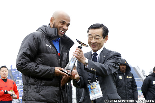 試合開始前のピッチサイドでは、前節コンサドーレ札幌戦でJリーグ通算200試合出場を果たしたディエゴ選手に表彰が行われます。