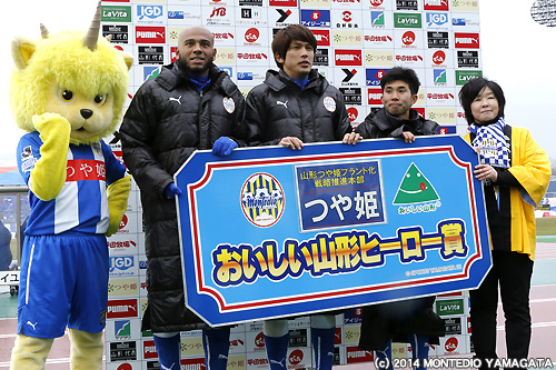 おいしい山形ヒーロー賞に選ばれたのはゴールを決めたこの3人。