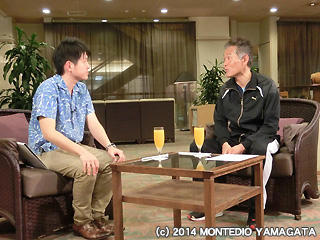 そして、トレーニングが終わった後は、前日に引き続き、NHK山形の番組出演です。開幕直前ということで石﨑信弘監督が出演し、深澤健太アナウンサーがインアビュアーを行いました。
