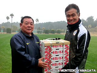 「木花いちご」を石﨑信弘監督に贈呈して頂き、選手達は夕食で美味しく頂きました。