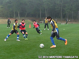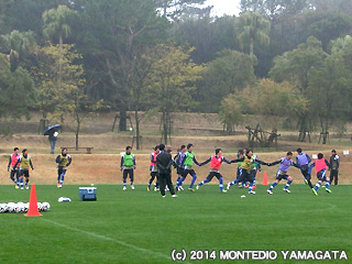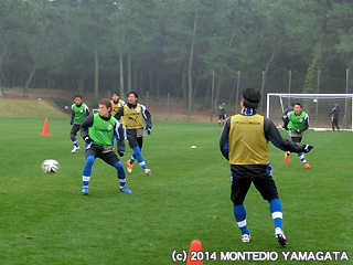 水分を含んだウェアや芝は、選手達の負荷を上げ、短いながらも効果的なトレーニングです。