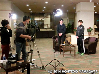 2部練が終了後、夕方ホテルロビーからNHK山形放送局による生中継です。