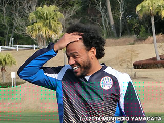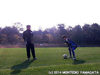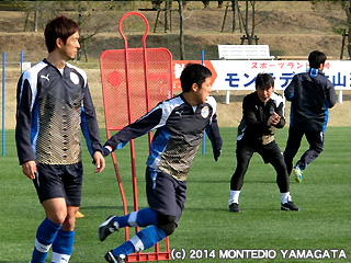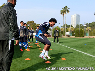 前日(2/21)、2014Jリーグキックオフカンファレンス参加した汰木康也選手が、朝一番の飛行機で宮崎に戻り、早速グラウンドで眩しい朝日を浴びながらJ1・J2・J3の代表選手達と共にステージに立った緊張感をリラックスさせながら汗を流しました。