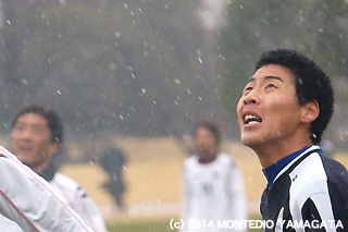 試合中も冷たいみぞれの降る厳しい天候の中、選手たちは積極的にボールにアプローチし、守備、攻撃両面で堅実にプレイ。
