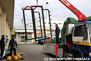 この練習の最中にはウェイトトレーニングなどの機材が練習場からトラックに搬出。