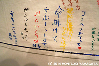 スカパー!Jリーグマッチデーハイライトなどでもバックに入れさせて頂いておりましたが、サポーターの皆様の選手たちに向けての寄せ書きです。