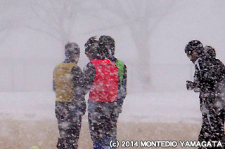 山形は雪国である以上、避けては通れない降雪。厳しい天候、視界の殆ど無い吹雪の中の練習となった日もありました。