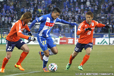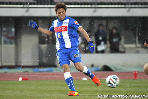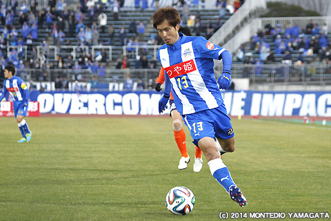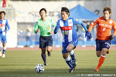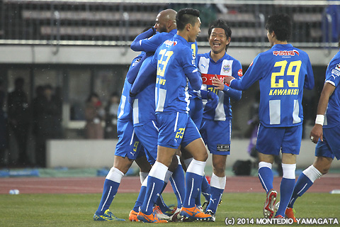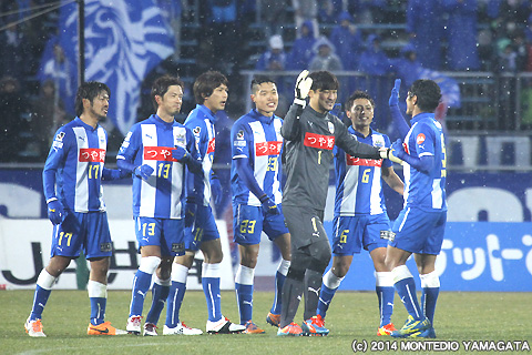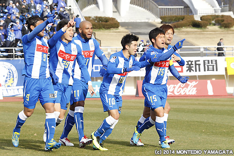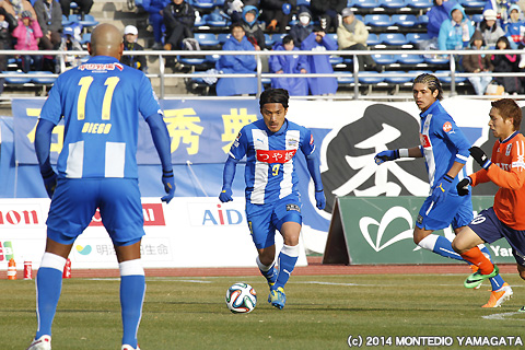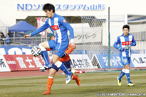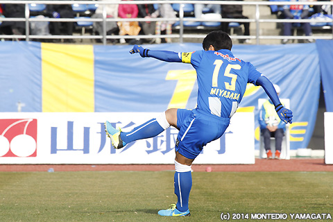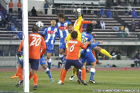 後半の64分、宮阪政樹選手が蹴った右コーナーキックから追加点が生まれます。ファーサイドでボールを待ち受けた當間建文選手が、高い打点のヘディングシュート。モンテディオ山形に移籍加入後初ゴールを決めます。