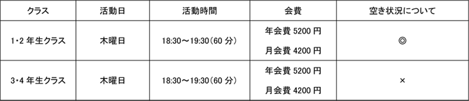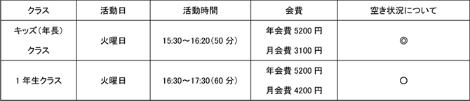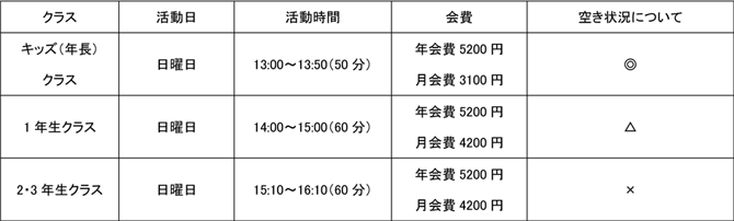 2014年4月15日(火)以降は、スクール活動へ体験参加(1 回無料)が可能です。体験参加・入会ご希望の方は、下記問い合せ先までご連絡下さい。