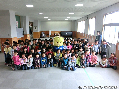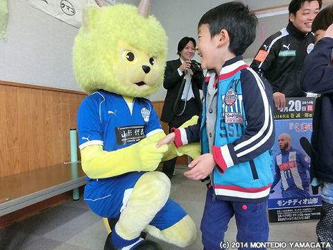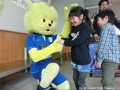 朝は天童市立長岡小学校に行ってきました。長岡小学校はスタジアムから非常に近く、みんなディーオのことを知っていました。