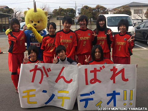 突然の訪問にも関わらず、「がんばれモンテディオ」というメッセージを掲げていた
