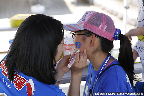 こちらはフェイスペイントの模様。好きな選手の番号やチームへの愛情を顔をキャンパスに表現します。このフェイスペイントは毎回無料で行われていますので、ぜひ次回はみなさんもチャレンジして下さい。