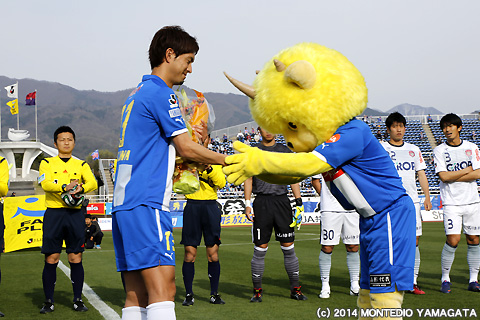 この試合では、キックオフ直前に前節ギラヴァンツ北九州戦でJリーグ通算300試合出場を達成した石川竜也選手への表彰が行われます。株式会社モンテディオ山形髙橋節社長より記念品とディーオから花束が贈呈されます。