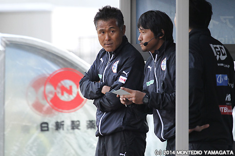 監督としては、Jリーグ最多となる通算500試合目と言うことで注目を浴びた石﨑信弘監督。かつては選手として指導した高橋健二コーチと共にチームを指揮します。