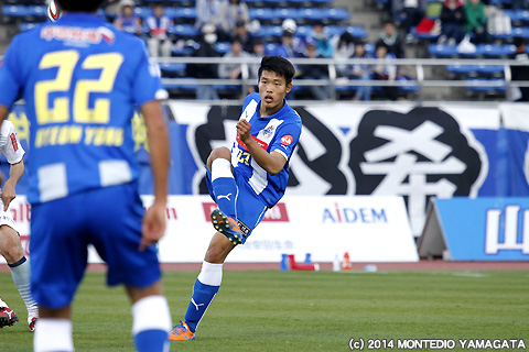 高い打点で相手ボールを跳ね返す、イジュヨン選手。今季はここまで全試合フルタイム出場となっており、モンテディオ山形守備陣に無くてはならない存在となりました。