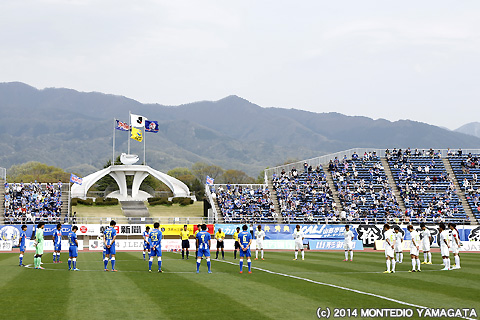 キックオフ前、モンテディオ山形のチームドクターを務められ先日逝去された小関大平氏への黙祷を行いました。選手スタッフの全員が喪章をつけて試合に臨みます。