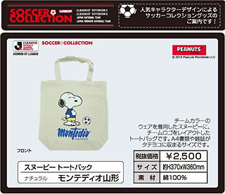 ◆チームカラーのウェアを着用したスヌーピーに、チームロゴをレイアウトしたトートバッグで